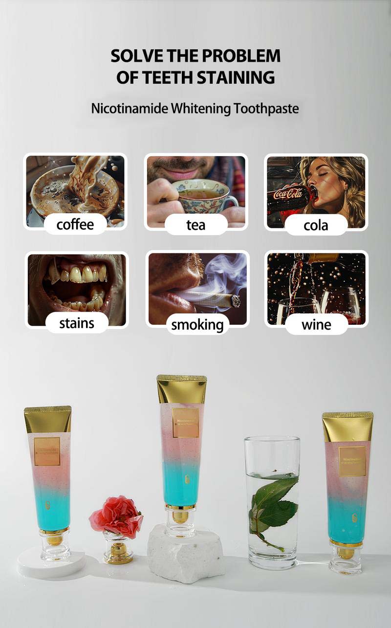 - Niacinamide: Makes teeth white by stopping dark spots
